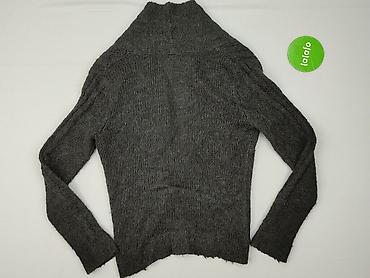 - Fason: kardigan zapinany na jeden guzik, z szerokim szalowym kołnierzem, długie rękawy, lekko wydłużony przód.