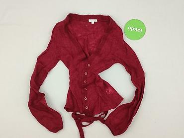 Damski kardigan z moherem, bordowy - Krój: krótki, lekko oversize, zapinany na 4 guziki z przodu - Dekolt: w kształcie litery V - Rękawy: długie, zakończone ściągaczem - Materiał (wg metki): 40% m...Stan:
