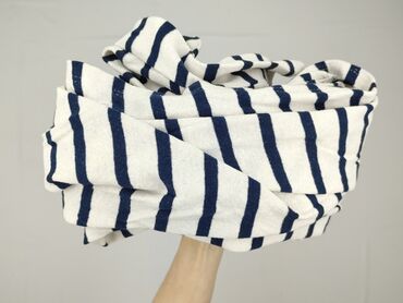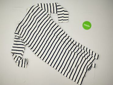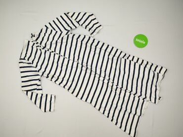 Damski kardigan bez zapięcia, rozmiar S. - Kolor i wzór: melanżowe, poziome paski w odcieniach granatu i bieli - Krój: swobodny, lekko wydłużony, z kołnierzem/szeroką plisą z przodu; długie rękawy...