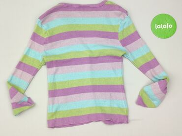 Kardigan damski z długimi rękawami, charakteryzujący się wzorem w paski w odcieniach zieleni, żółci i błękitu. Dekolt w kształcie litery V i zapięcie na guziki dodają mu klasycznego wyglądu. Jest t...