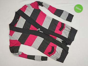 Długi kardigan damski UP2 FASHION, rozmiar M (na metce także S/M). Model bez zapięcia, o luźnym kroju. - Wzór: szerokie, poziome pasy w odcieniach miętowej zieleni, jasnego szarego, pudrowego ró...
