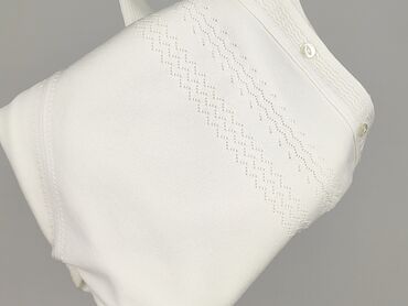Biały, prążkowany kardigan/bluzka na guziki Frabé Fashion Line. - Damski, rozmiar z metki: 46 - Skład materiału: 50% bawełna, 50% wiskoza – miękki, oddychający dzianinowy splot - Krój: luźniejszy,...