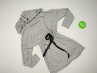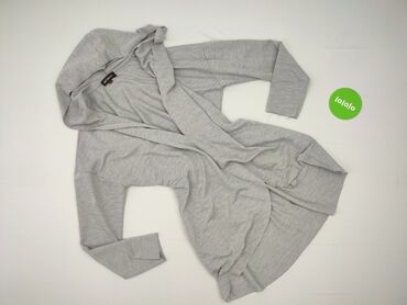 Szary kardigan damski bez zapięcia - Fason: długi, otwarty kardigan z kołnierzem szalowym - Rękawy: długie - Dół i boki: przedłużane panele do swobodnego wiązania; dolna część tyłu w prążek - Kolo...
