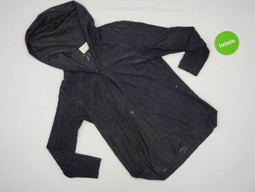 Czarny kardigan damski z kapturem, wykonany z lekkiej żorżety poliestrowej. Charakteryzuje się luźnym fasonem i długimi rękawami, co czyni go wszechstronnym elementem garderoby. Zapinany na pojedyn...