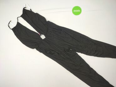 Czarny damski kombinezon H&M Basic - Rozmiar: XS (EU/DE XS, US XS, CA TP, CN 160/80A, MX XCH) - Fason: długie, szerokie nogawki; góra typu smock (mocno marszczona/rozciągliwa), wiązane ramiączka -...