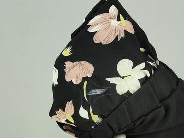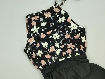 - Góra: czarna w kwiatowy print (biało‑kremowe i pudroworóżowe kwiaty), dekolt halter wiązany na ramiączko przy szyi