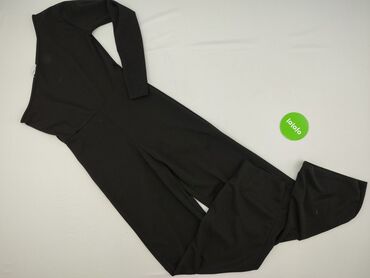 Czarny kombinezon damski z falbaną na jedno ramię - Krój: długie nogawki zakończone ściągaczami, dopasowana talia z gumką, górna część z obszerną falbaną „hiszpanka” noszoną na jedno ramię. - Mate...