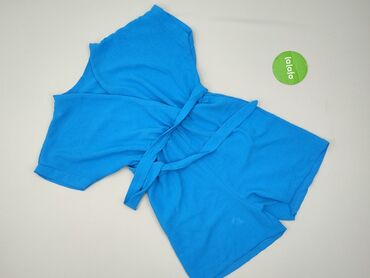 - Krój: luźna góra z kopertowym dekoltem, krótkie rękawy, krótkie nogawki. Elastyczna talia z wszytą gumką i paskiem do przewiązania.