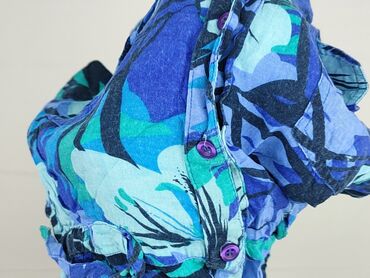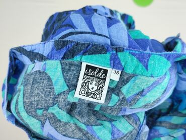 Na co dzieńKombinezon damski marki Isolde w rozmiarze 38, wykonany w 100% z wiskozy. Charakteryzuje się wzorem w liście i kwiaty w odcieniach błękitu, turkusu i granatu. Posiada kołnierzyk V-neck i zapięcie na fioletowe guziki z przodu. W talii ściągacz, a na wysokości klatki piersiowej znajdują się dwie kieszenie z patkami. Krótkie rękawy i nogawki nadają mu lekki, letni charakter. Idealny na ciepłe dni.