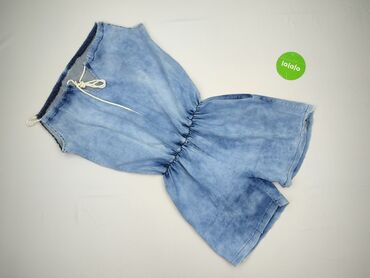 Jasnoniebieski kombinezon damski DIVERSE, rozmiar L. - Materiał: lekki denim/lyocell w kolorze jasnego błękitu (miękki, przewiewny). - Krój: jednoczęściowy kombinezon z krótkimi nogawkami. - Talia...