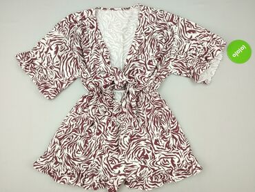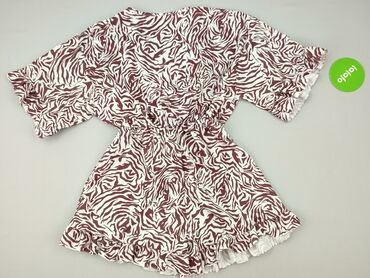 Kombinezon damski z lekkiej tkaniny, wzorzysty. - Krój: jednoczęściowy, z krótkimi nogawkami i kopertowym dekoltem V z przodu - Talia: elastyczna, marszczona – podkreśla sylwetkę i zapewnia wygodę...