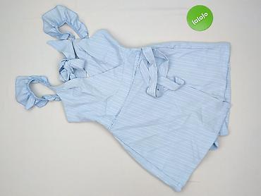 - Fason: kopertowa góra z wiązaniem na biuście, rozkloszowana dolna część w formie krótkich spodenek (szorty); w pasie pasek do przewiązania