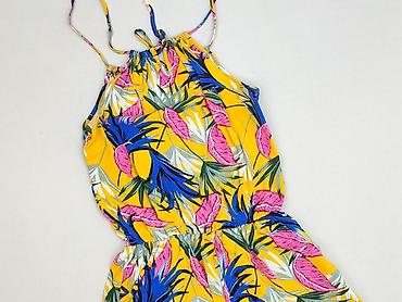 Żółty letni kombinezon damski w kwiaty - Krój: jednoczęściowy kombinezon z krótkimi nogawkami - Ramiączka: cienkie, regulowane - Dekolt: w kształcie litery V - Talia: elastyczna gumka podkreślając...