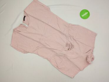 Kombinezon damski w kolorze jasnoróżowym, idealny na cieplejsze dni. Charakteryzuje się krótkimi rękawami oraz okrągłym dekoltem. W talii znajduje się ściągacz ze sznurkiem, który pozwala na regula...Stan: