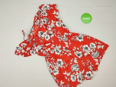 Letni kombinezon damski New Look - Kolor: intensywna czerwień z białym, kwiatowym printem - Fason: krótkie nogawki; odkryte ramiona typu cold shoulder z falbaną; jeden cienki regulowany ramiączek ...Stan: