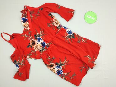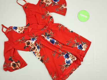 Czerwony damski kombinezon szorty - Fason: jednoczęściowy kombinezon z krótkimi nogawkami - Kolor: intensywna czerwień - Dekolt: z ozdobnym wycięciem w kształcie łezki z przodu - Ramiączka: wiązan...