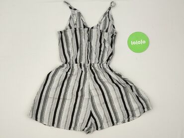 Krótki kombinezon damski H&M Divided w biało-czarne paski. Charakteryzuje się cienkimi ramiączkami i elastyczną talią, która podkreśla sylwetkę, zapewniając jednocześnie komfort noszenia. Idealny na letnie dni lub jako element stylizacji casualowych.