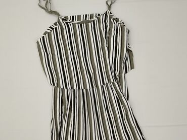 Kombinezon damski H&M Divided - Model: letni kombinezon/ramper z krótkimi nogawkami - Kolor i wzór: czarny w białe, pionowe etno‑pasy i rozetki - Krój: góra typu bardot ze ściągaczem (można nosić ...
