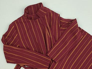 - Wzór: wąskie pionowe paski w odcieniach musztardowym na tle w kolorze bordo/burgund