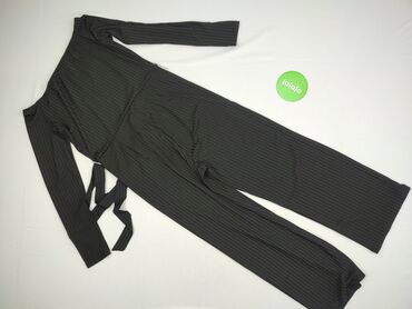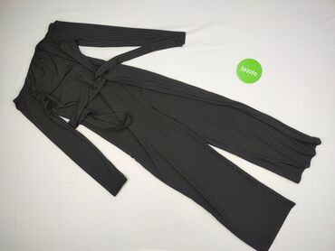 Czarny kombinezon damski w biało-czarne, nieregularne paski (efekt zebry). - Fason: długie nogawki, góra z głębszym dekoltem V - Rękawy/ramiona: krótkie, falbaniaste naramienniki - Talia: wiązany ...