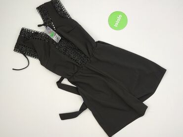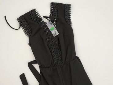 Czarny damski kombinezon z koronką - Fason: dopasowany, nogawki zwężane - Góra: wstawki z ażurowej koronki – dekolt, ramiona i rękawy - Rękawy: 3/4 z koronki - Tył: zapięcie na zamek + łezka pod s...