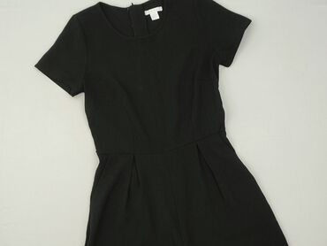 Czarny kombinezon damski Even&Odd, rozmiar M. - Fason: krótki kombinezon (shorts), luźna góra z kopertowym dekoltem - Rękawy: krótkie, bufiaste - Talia: elastyczna gumka + wiązanie/pasek do podkre...