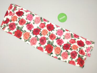 - Wzór: gęsty nadruk róż w odcieniach czerwieni, różu i koralu na białym tle, zielone liście