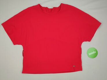 Komplet damski Lissa Paris – bluzka + spódnica - Kolorystyka: intensywna czerwień z czarnym tłem, duży kwiatowy print. - Bluzka: krótki rękaw, okrągły dekolt. Górna część oraz rękawy z półprzezroc...