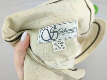 Kostium damski EOS Collection – żakiet + spódnica - Kolor: jasny beż/ecru z delikatną lamówką w kontrastowym odcieniu. - Rozmiar z metki: 36. - Skład tkaniny: 94% bawełna, 6% elastan – miękki, odd...
