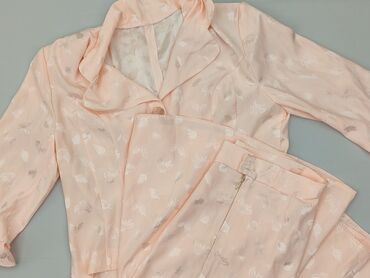 Damski komplet garniturowy Classic Fashion – marynarka + spodnie - Kolor: beż/karmel - Wzór tkaniny: delikatna, nieregularna faktura (subtelny żakardowy efekt) - Rozmiar z metki: 46 Marynarka: - ...