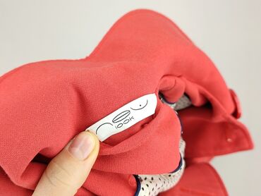 Krótszy trencz damski TU - Kolor: koralowy/róż łososiowy - Krój: krótki, dwurzędowy - Zapięcie: duże guziki z przodu - Kołnierz: szeroki, z klapami - Rękawy: długie, z paskami i klamrami przy mank...
