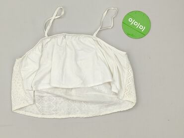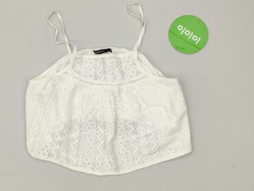 Biały top koronkowy na ramiączkach - Krótki, lekko prążkowany top z ażurowym wzorem w jodełkę - Ozdobna koronka wzdłuż dekoltu i ramiączek - Z przodu satynowa kokardka - Cienkie, podwójne ramiączk...
