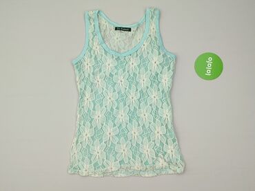 Ażurowa bluzka bez rękawów w kolorze miętowym - Krój: dopasowany top na ramiączkach/sleeveless - Dekolt: z przodu i z tyłu bogato zdobiona, koronkowa wstawka z kwiatowym motywem; z przodu krótkie ...