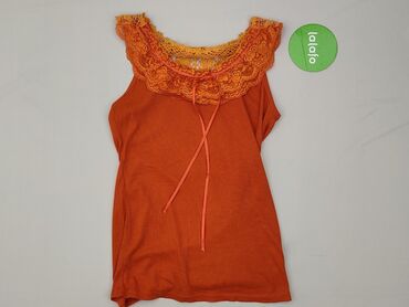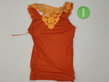 OkrągłyTen damski top w kolorze pomarańczowym wyróżnia się koronkowymi detalami na dekolcie i ramionach. Koronka w odcieniach pomarańczy i żółci nadaje mu wyjątkowego charakteru. Top ma krótkie rękawy i jest wykończony ozdobnymi sznurkami z przodu. Idealny na co dzień lub na specjalne okazje, doskonale sprawdzi się w letnich stylizacjach. Stan idealny.Charakterystyka:
