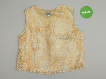 Bluzka bez rękawów damska, rozmiar XL. - Krój: prosty, bez rękawów, okrągły dekolt - Wzór: kwiatowy na kremowym tle; delikatnie tłoczona/koronkowa faktura tkaniny - Kolory: beż, brąz, złamany biał...