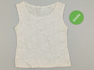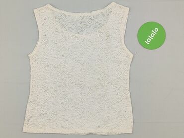 Biała koronkowa bluzka bez rękawów - Fason: prosty, lekko dopasowany, bez rękawów, okrągły dekolt - Materiał: ażurowa koronka o kwiatowym wzorze; pod spodem gładka podszewka w tym samym kolorze - ...