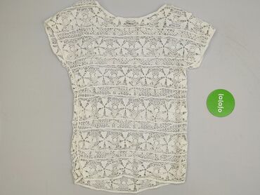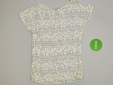 Ażurowa bluzka damska George - Kolor: biały/ecru - Materiał: 100% poliester (koronka ażurowa z geometrycznym wzorem) - Krój: luźny, z krótkim rękawem typu kimono - Dekolt: okrągły, z zapięciem na ...