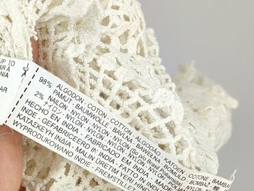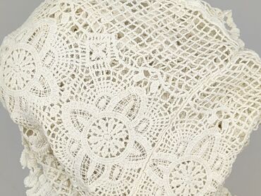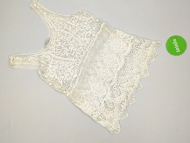 Ażurowy top na ramiączkach, biały, dziergany. - Krój: krótki top/crop z dekoltem V z przodu, lekko zaokrąglonym z tyłu. - Przód z dekoracyjnym sznurowaniem na środku (bawełniany pasek do regulacji...
