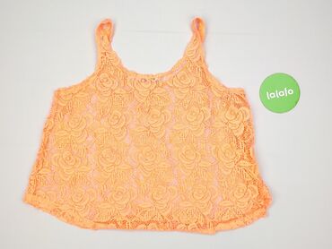 Koronkowy top na ramiączkach Cubus - Marka: Cubus - Rozmiar z metki: L - Kolor: neonowy żółty (highlighter) - Krój: luźny, krótki top typu crop; zaokrąglony dekolt i dół nieco dłuższy z tyłu - Mat...Wady: