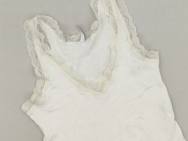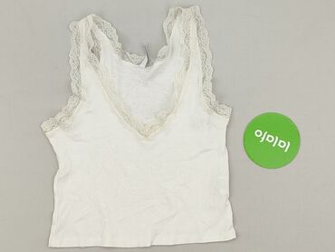 Bluzka bez rękawów CROPP - Kolor: biały - Materiał: 100% bawełna (lekka, karbowana tkanina) - Koronkowa góra z ażurowym wzorem kwiatowym - Okrągły dekolt - Zapięcie z tyłu na guzik - Dół ze ściąga...