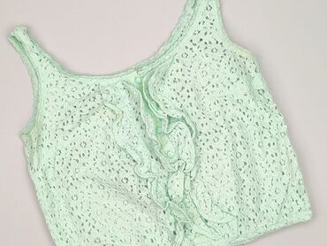 Ażurowa bluzka bez rękawów w kolorze miętowym - Krój: dopasowany top na ramiączkach/sleeveless - Dekolt: z przodu i z tyłu bogato zdobiona, koronkowa wstawka z kwiatowym motywem; z przodu krótkie ...