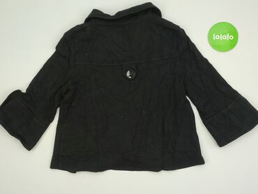 Żakiet koronkowy O2 Collection, damski - Krój: krótki, bez zapięcia (otwarty front) - Kolor: czarny z ecru - Materiał: 60% poliester, 35% rayon, 5% spandex; podszewka śliska, satynowa w kropki - D...Stan: