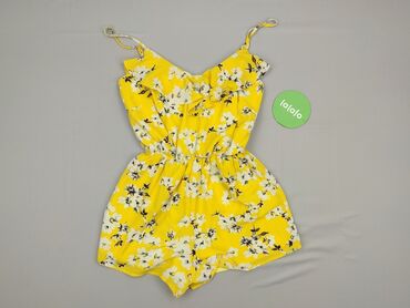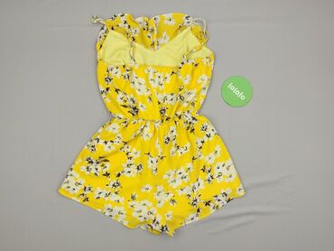 Damski kombinezon ORSAY - Rozmiar: S (EU S) - Kolor: czarny - Fason: bez rękawów, długie nogawki, kopertowy przód z zakładkami, pasek do przewiązania w talii - Dekolt: ozdobiony aplikacją/kamienia...Żółty damski kombinezon letni QUIZ