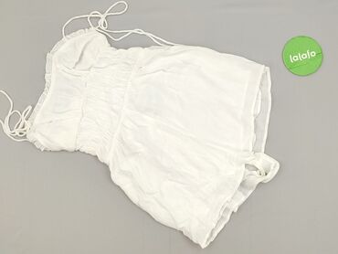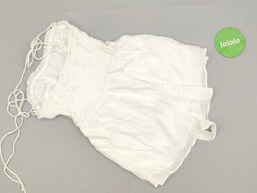 Bershka – letni kombinezon damski - Rozmiar z metki: L (Mex 30) - Fason: jednoczęściowy kombinezon z krótkimi nogawkami - Ramiączko: jedno, wiązane na supeł z ozdobnymi koralikami - Talia: delikat...Bershka – biały krótki kombinezon damski na ramiączkach