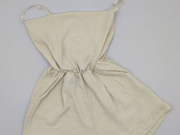 Beżowy kombinezon damski SHEIN, rozmiar S (EU 36, US 4) - Krój: szorty, ramiączka na szerokich szelkach - Dekolt zapinany z przodu na rząd guzików - Talia ściągana troczkiem do regulacji dopasowan...