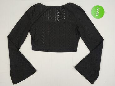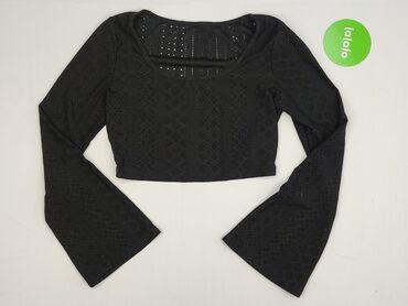 Czarny, koronkowy top H&M Divided - Marka: H&M Divided - Rozmiar z metki: XS (EU), US XS, CN 160/80A - Fason: krótki top (crop), dopasowany - Rękawy: długie - Dekolt: delikatnie zabudowany, lekka ...