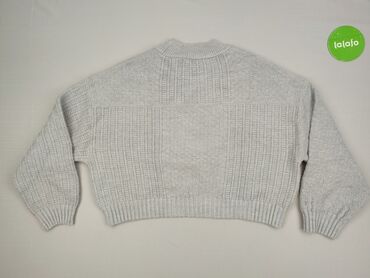Sweter damski, dzianinowy, szary melanż z delikatnym połyskiem. - Fason: klasyczny, z okrągłym dekoltem i długim rękawem - Przód: ozdobny ażurowy wzór w kształcie jodełki/gałązek - Tył: gładki ś...