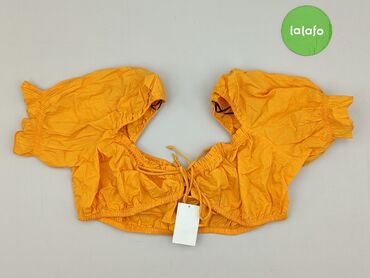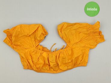 Żółta bluzka damska H&M Divided - Rozmiar: S (EU S, US S, CN 165/88A) - Krój: crop top - Dekolt: w kształcie litery V - Rękaw: krótki, lekko rozszerzany - Detal: marszczenie i regulowane ściągnięc...