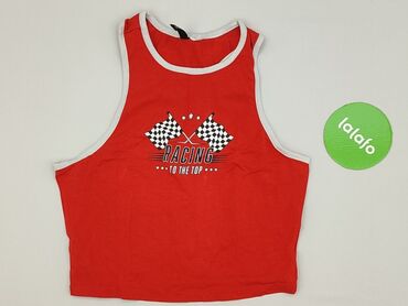 Czerwony top typu crop od H&M (linia Divided), rozmiar M. - Model: bez rękawów, mocno wycięte pachy i plecy (krój bokserka) - Kolor: czerwony z białą lamówką przy dekolcie, pachach i dookoła - Nadr...