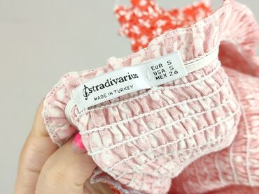InnyKrótki top hiszpanka marki Stradivarius w odcieniu czerwonym z białym kwiecistym wzorem. Charakteryzuje się elastycznym marszczeniem na całej powierzchni, co zapewnia dopasowanie i komfort noszenia. Odkryte ramiona dodają lekkości i sprawiają, że idealnie nadaje się na ciepłe dni. Modny i wygodny wybór na co dzień, na wakacje czy letnie wyjścia.